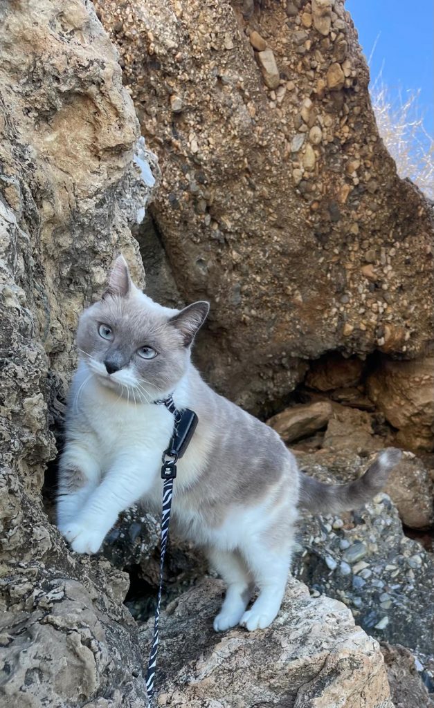 Nos despertamos temprano y desayunamos en Los Churros Café, donde pedimos unas tostadas y unos churros con chocolate. El chocolate estaba delicioso, aunque los churros no nos convencieron demasiado. Con el estómago lleno, preparamos a nuestra gatita Sira y bajamos a la playa para hacer la digestión, regresando a la Cala Carabeo, que el día anterior no pudimos disfrutar.