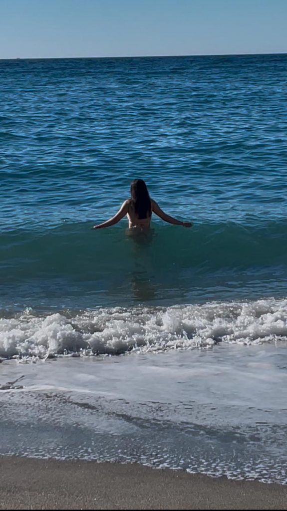 Con nuestras sillas, nuestros libros y un sol agradable, pasamos una mañana perfecta frente al mar. El sonido de las olas era intenso —más inquietante que relajante—, pero el calor suave y la tranquilidad del ambiente compensaban con creces. Incluso me animé a darme un baño improvisado, ¡y eso que era 2 de noviembre!