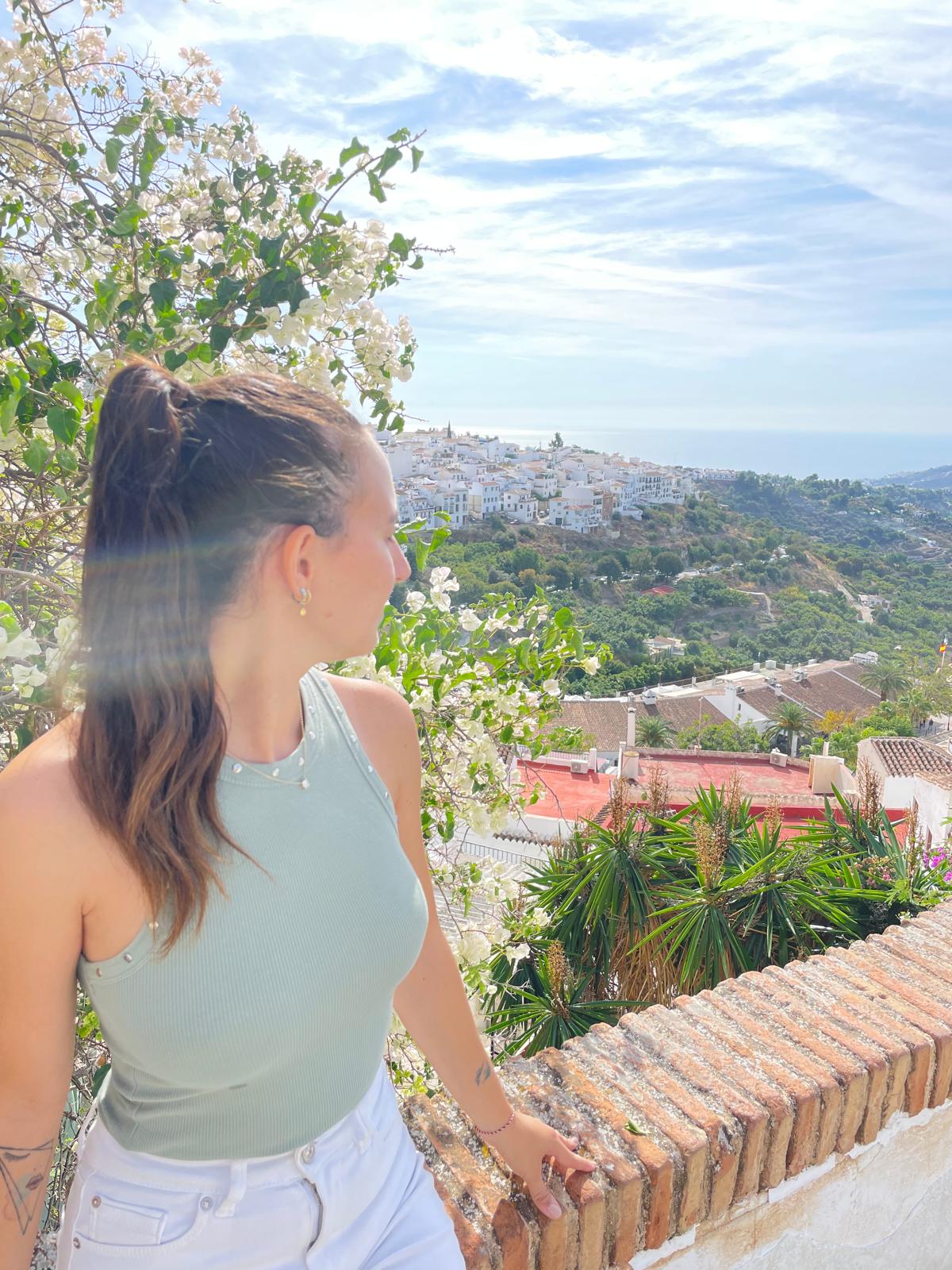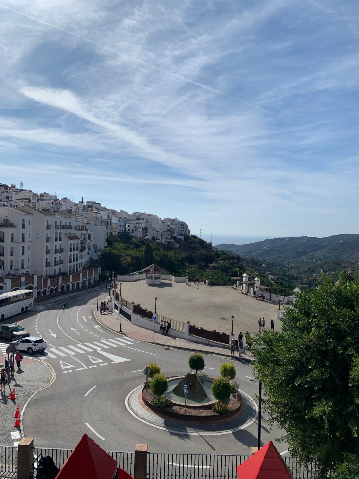 Al día siguiente decidimos hacer un poco de turismo de interior y nos dirigimos a Frigiliana, uno de los pueblos más bonitos de la Axarquía malagueña. Aparcamos a la entrada del pueblo, donde —si tu autocaravana o camper no es demasiado ancha— se puede estacionar sin problema.